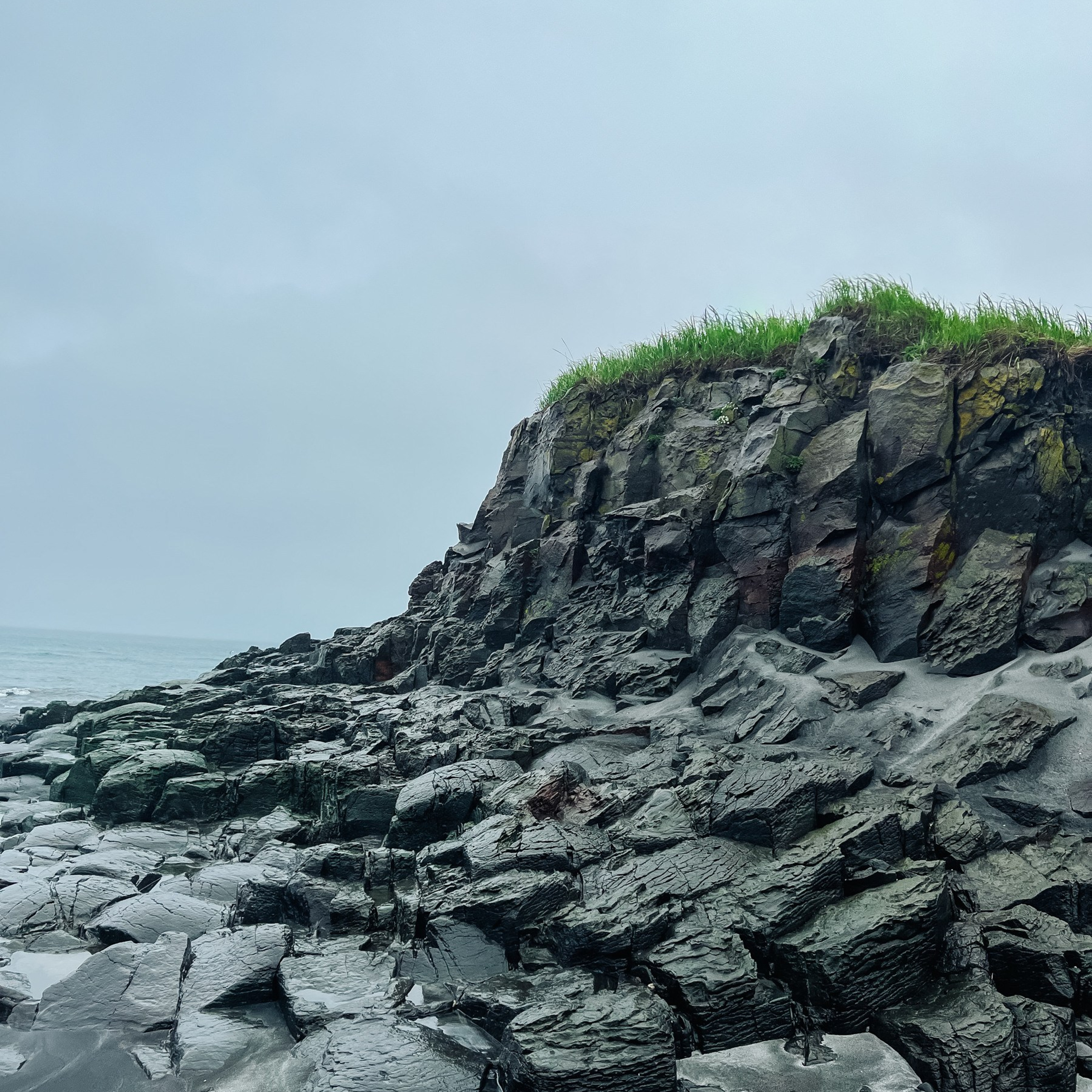 Несколько километров скал с зелеными шапками, белый кварцевый песок, смешанный с черными, а еще изумрудное море