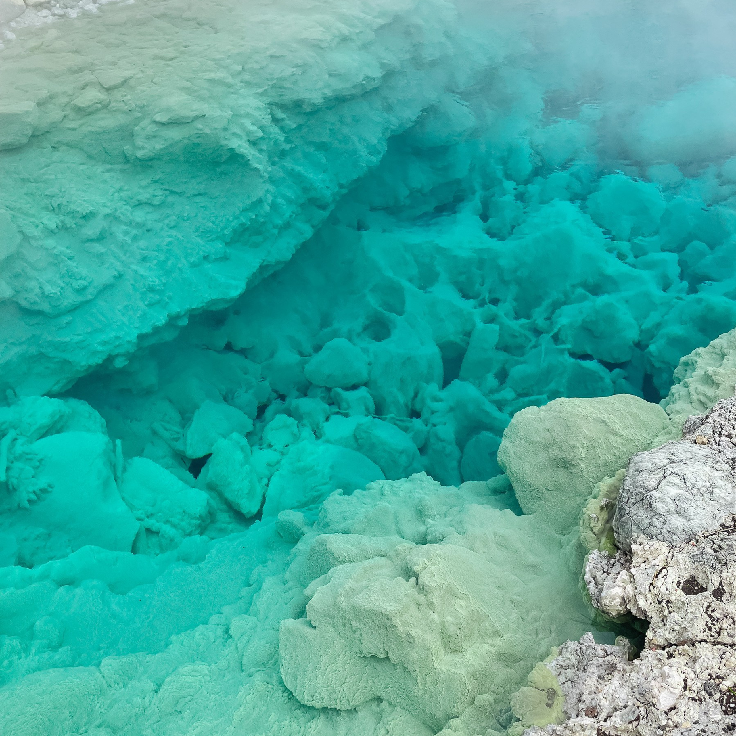 Первая остановка у подножья вулкана, увидим серные источники, грязевые котлы с голубой глиной,