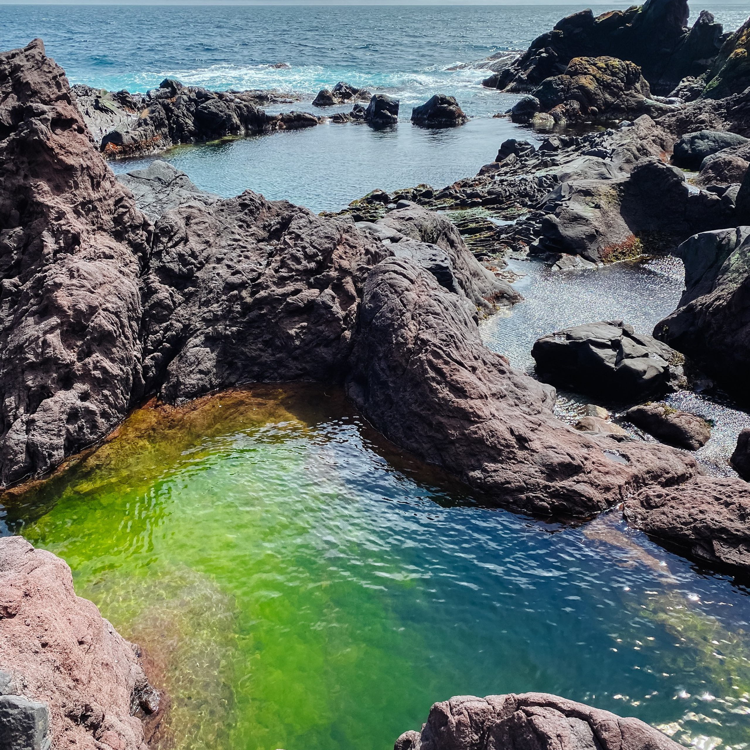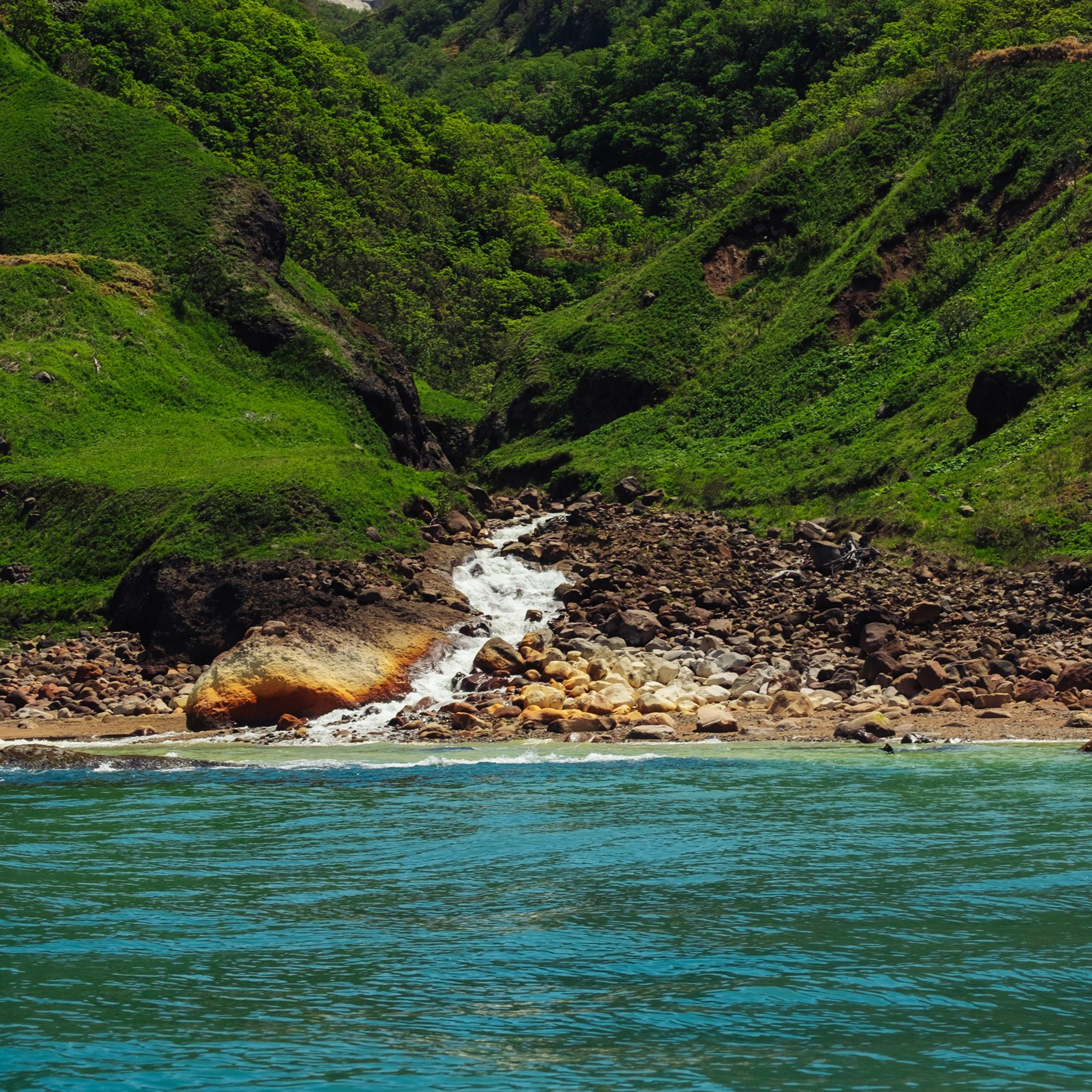 Это место уникально тем, что чистейшая пресная вода находится между скал, затем вытекает наружу