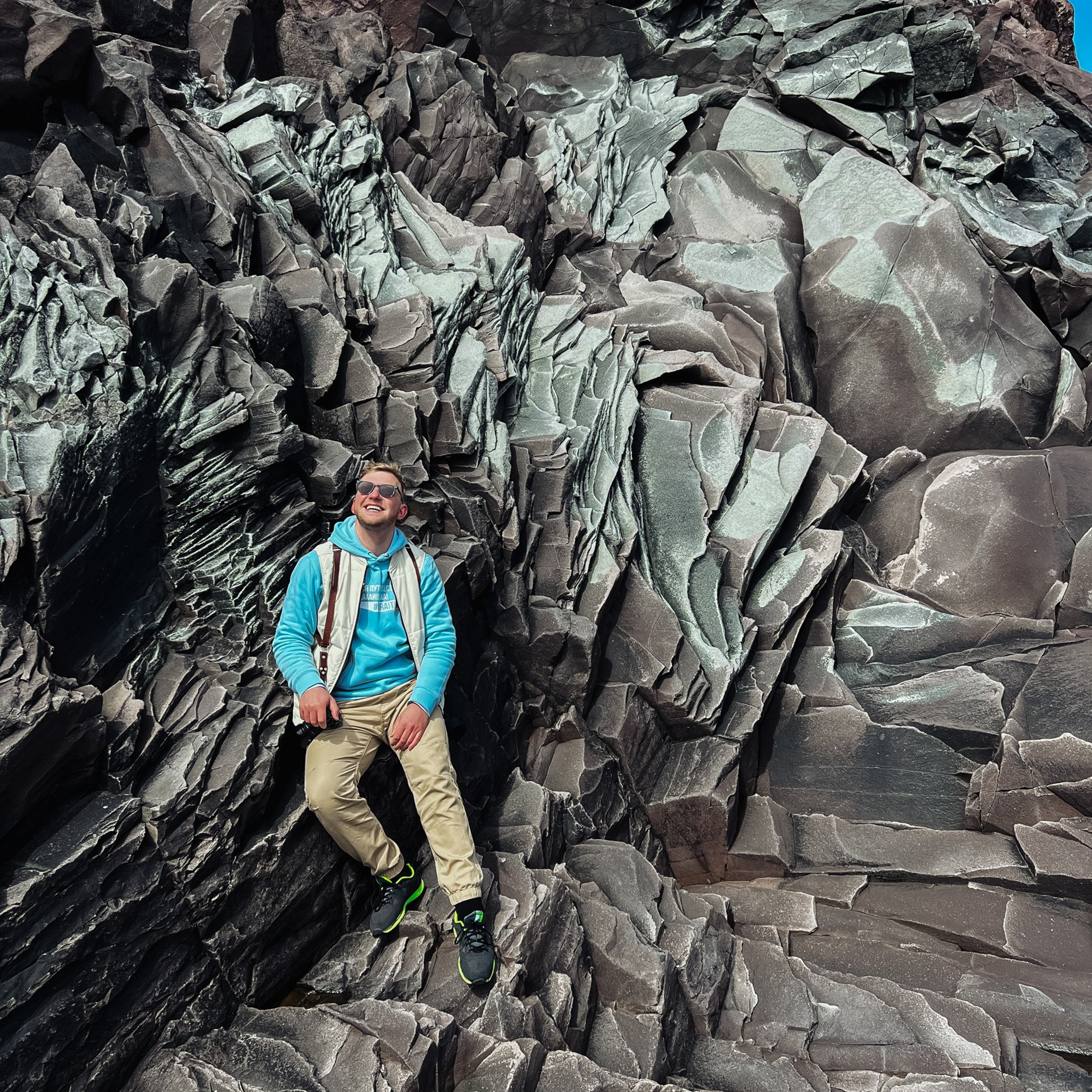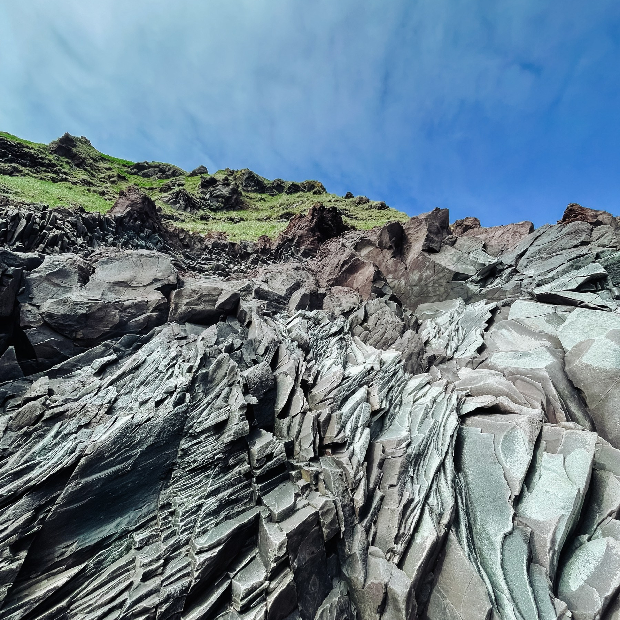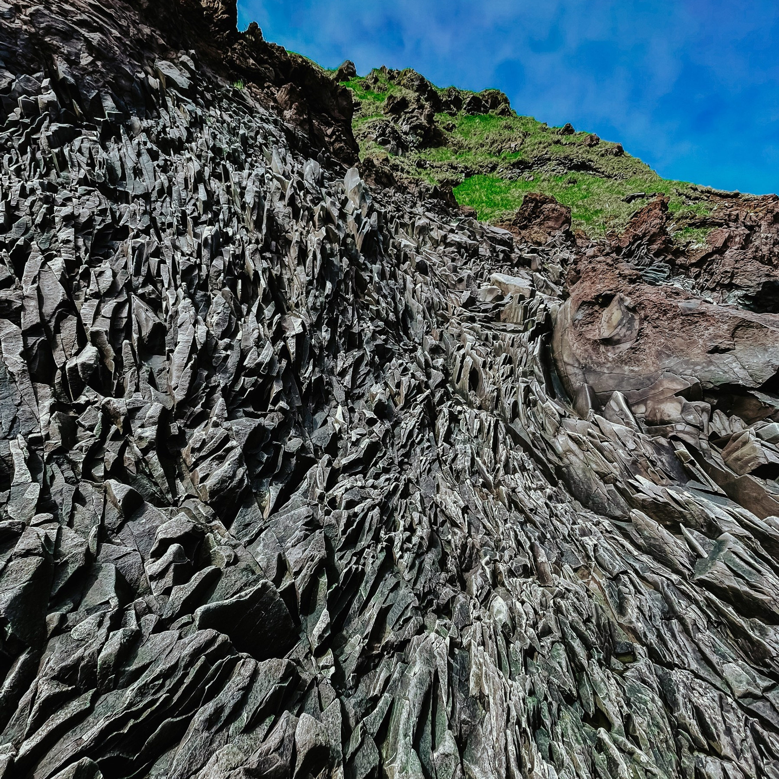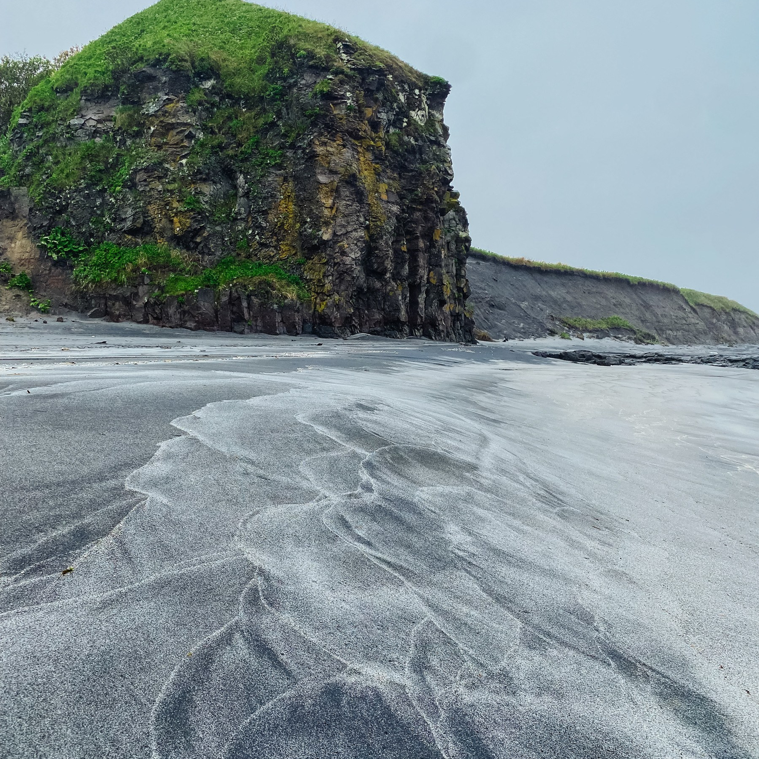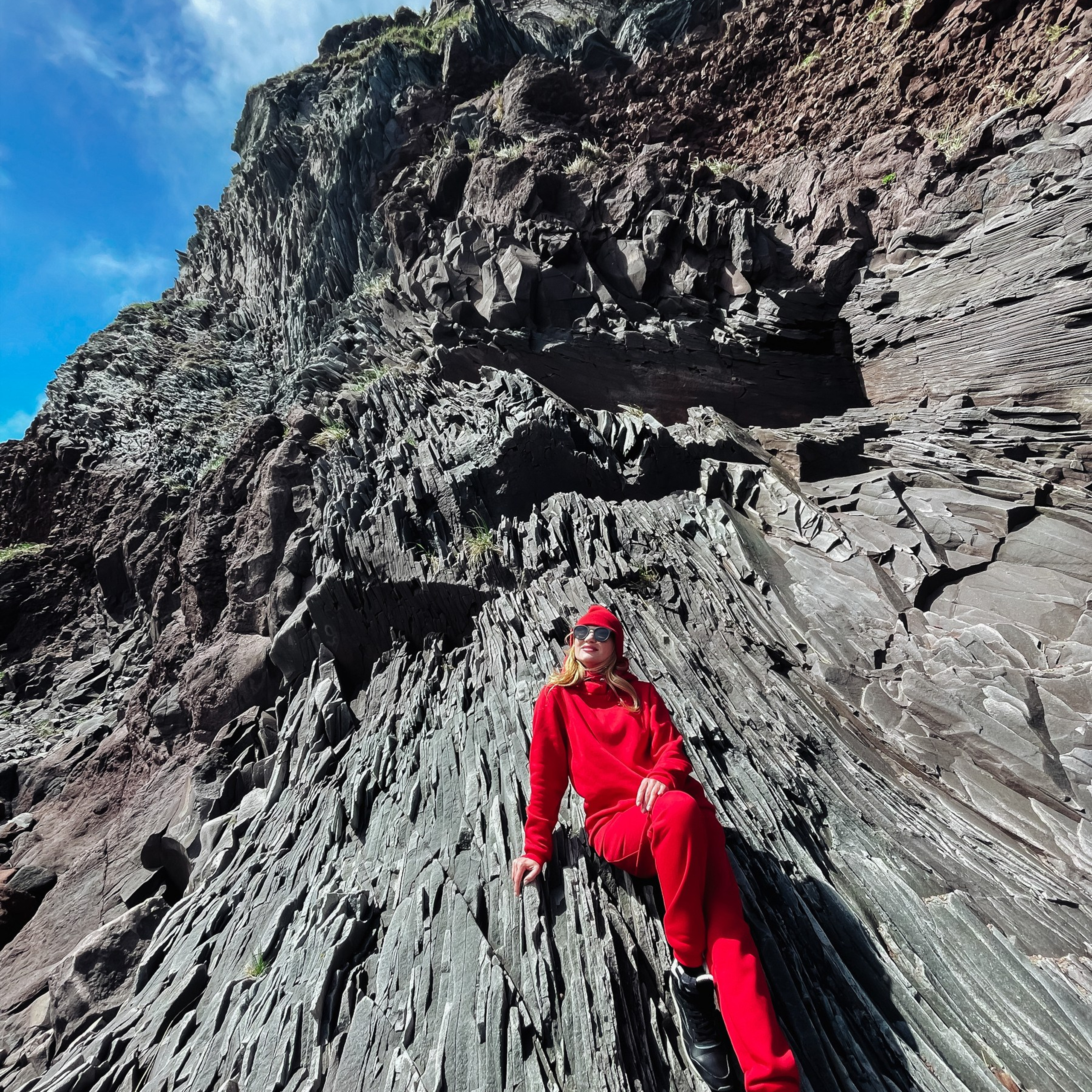 Далее исследуем скалы в заливе. Сказочные места. Черные скалы– это лавовые выходы вулканических пород, белые– пемзовые